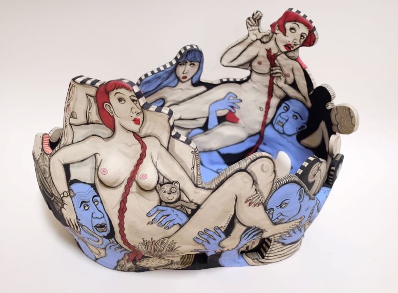 “Revolutions” explores the dynamics of power and gender… The vessel functions as a circular canvas whose interior and exterior spaces are activated with imagery examining the ever-changing roles of women and cultural gender norms.