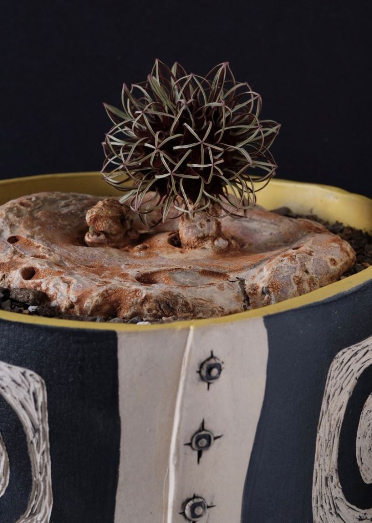 As some know, I’ve been using my ceramics to house unusual plants. I recently acquired a very bizarre plant from one of my favorite sources: Out Of Africa Nursery. This new fellow is formally known as Brachystelma barberae, but in my family we affectionately call him “the buffalo turd”. Why? Well, because in his dormant period he looks just like a buffalo turd: a flat brownish hard nodule sitting just atop the ground.