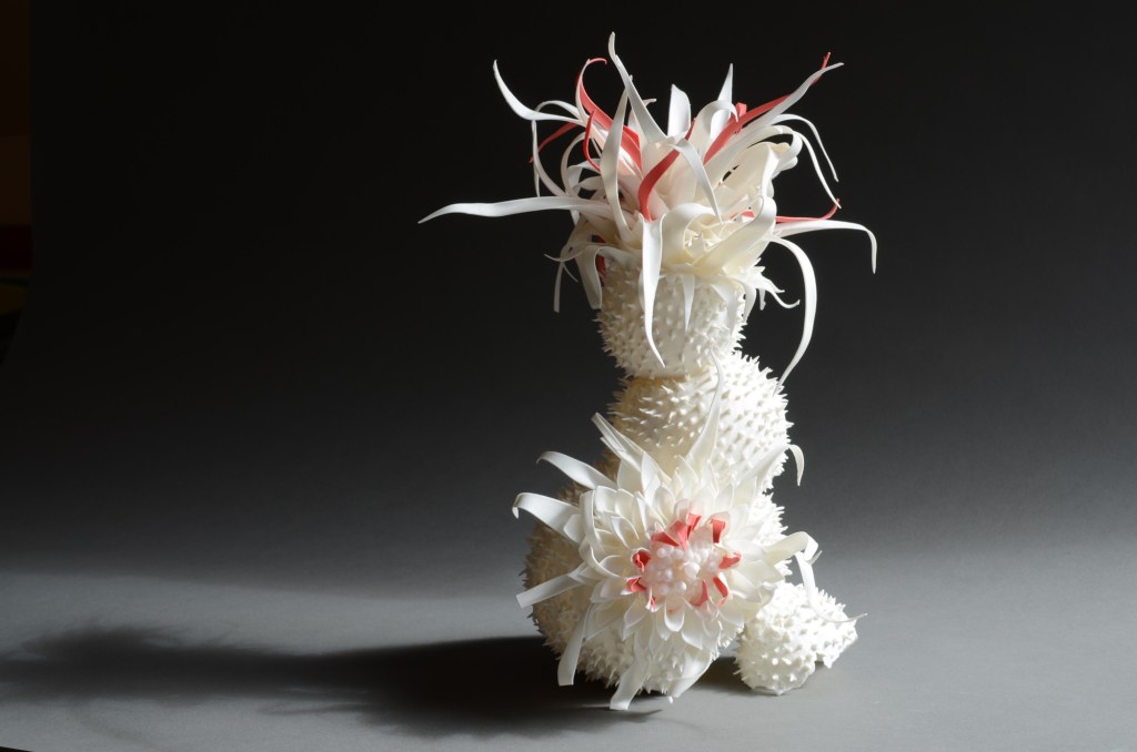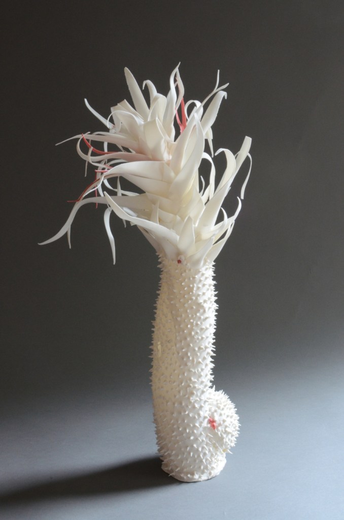 Francoise Joris is a Belgian ceramic artist. Her work is identifiable by its ethereal, fragile appearance and suggestions of marine and plant living forms. The best introduction to her work is perhaps this video, which although in French with Dutch subtitles, demonstrates her creative process.