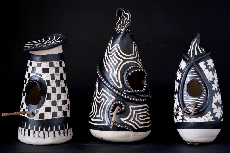 I started a series of Sgrafitto birdhouses in the fall as a way to inject levity and fun into the shortening days of winter. It’s been a pleasure to work on them. And it was fun to have these to fire when I quarantined with Coronavirus.