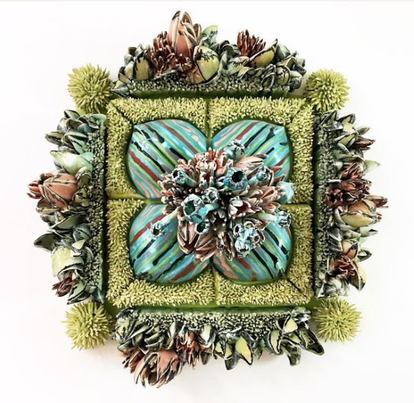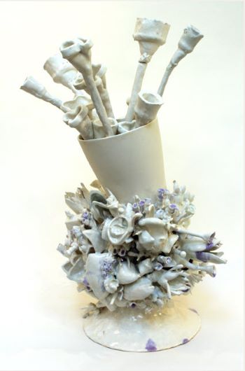 Susan describes her work process in the Virtual Studio Tour video below. As she walks through her studio, she shows several work examples (both in process and complete), plus some of the many molds she uses in her work. Susan’s video tour is one of the more interesting I’ve seen. In the first 10 minutes, as she moves quickly through her studio space, you get a real sense of how she uses molds to create the components of her large-scale pieces, and then you see some of the finished components that she will assemble into finished works. She also shows her studio in the context of her garden – an important part of her ceramic pieces and her lifestyle.