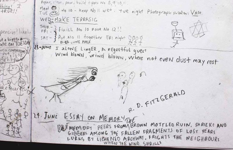 PM: Firstly I begin planning a piece while cooking, going for a walk, watching netflix, having a shower etc. I feel around and find a way of making a thought or idea three-dimensional. I sketch and write down a few measurements as a guide to the size, and then I build the pieces. Most of the surfaces evolve, I don’t really plan it too much, just little sketches on the dry form. I follow my nose.