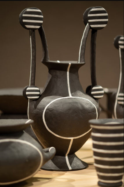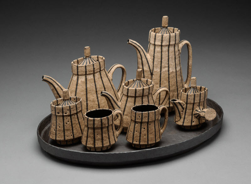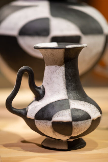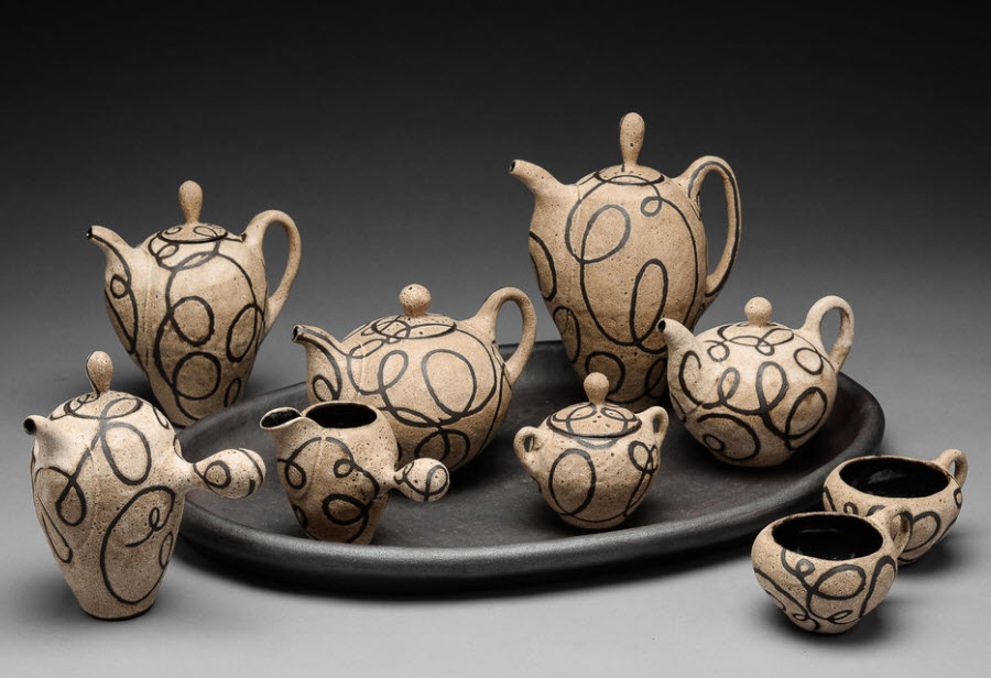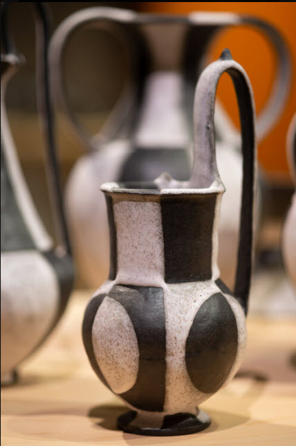 MB: I just did a series on Etruscan forms and had that exhibition at the Museum of Nebraska Art. That’s more sculptural work. I have been invited to participate in the Saint Croix pottery tour in Minnesota next spring, so I’m now in the process of adapting those sculptural forms and some of my previous forms from the Modernist Series into functional pots. Summer was a very productive time for me in the studio because I could go there and work every day. Now I’ll start working on surface designs for those forms.