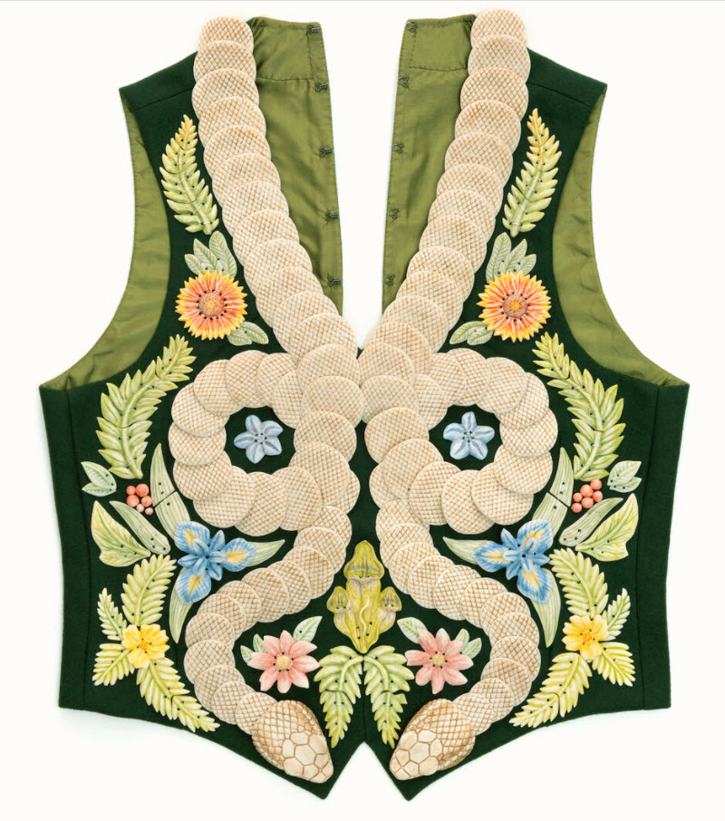 SB: I started making my ceramic garments 10 years ago at the Kansas City Art Institute. I have continued this body of work ever since. Each of these pieces usually takes 4-9 months to make, so it’s quite a slow process to work through all my ideas. Also, the ways that I think about this work have evolved over time and branched into a few different groups. There is so much to think about at the intersection of clothing, history, personal narrative, craft processes, and materials. It’s still so exciting for me.