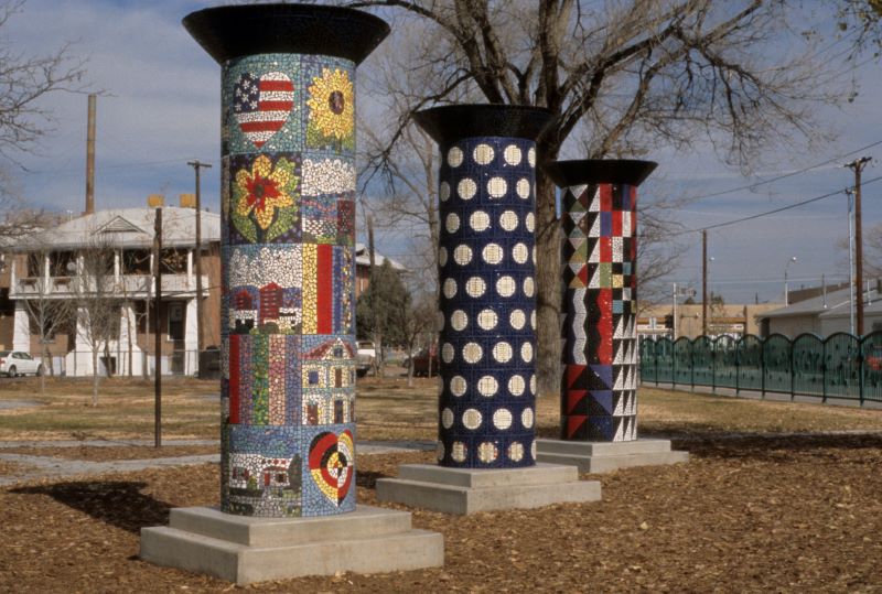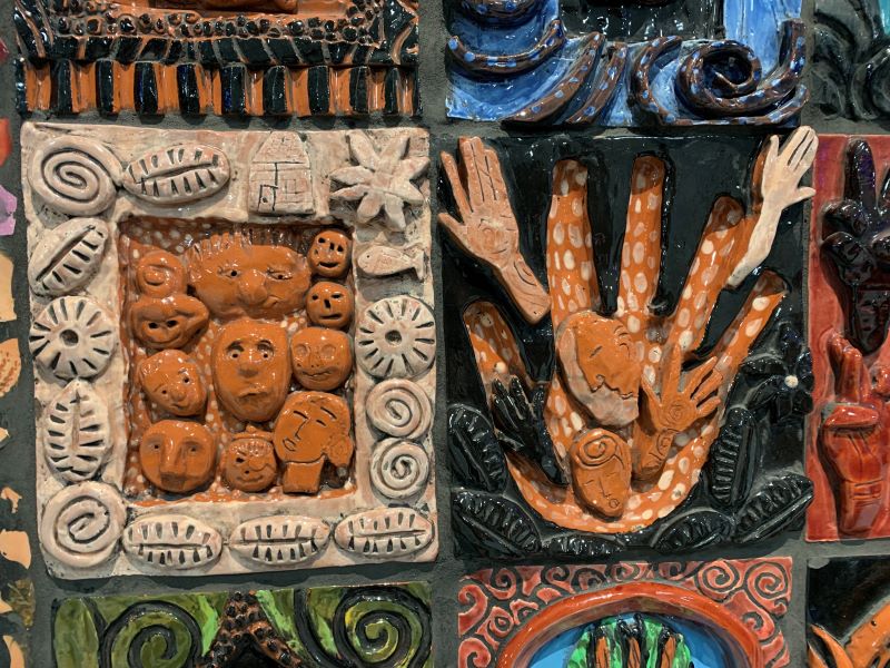 Eddie Dominguez is Professor of Art at the University of Nebraska, Lincoln, who does a significant amount of creative work with members of the community (or, I should say, members of different communities). I first encountered one of Eddie’s pieces when travelling through the Phoenix airport a month ago. The piece is entitled “Collaboration” and is a mosaic composed of ceramic pieces. I was intrigued enough to seek out Eddie to ask him more about his work.