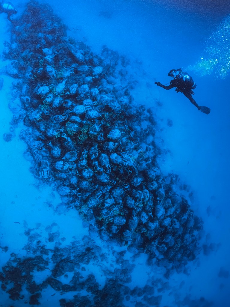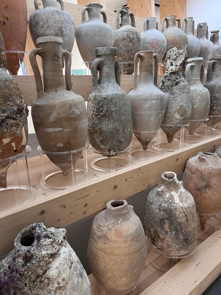I was impressed with a creative display of ceramic containers recovered underwater from a Roman-era shipwreck. In addition to displaying the ceramic vessels themselves, the museum recreated the underwater setting with photographs and ceramics placed in salt water aquariums.