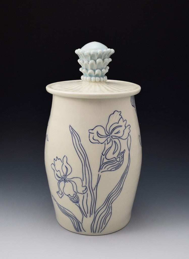 Often these pots are such great decorative canvases. I didn’t mention this before, but I have a minor in surface design. I love textiles and surface decoration. I use combinations of repetitive geometric, meditative patterns and floral patterns around the surface of the pot, both of those really honor the balance of the parts of my brain – sort of the yin and yang of precision or free-form, open to space and grace.
