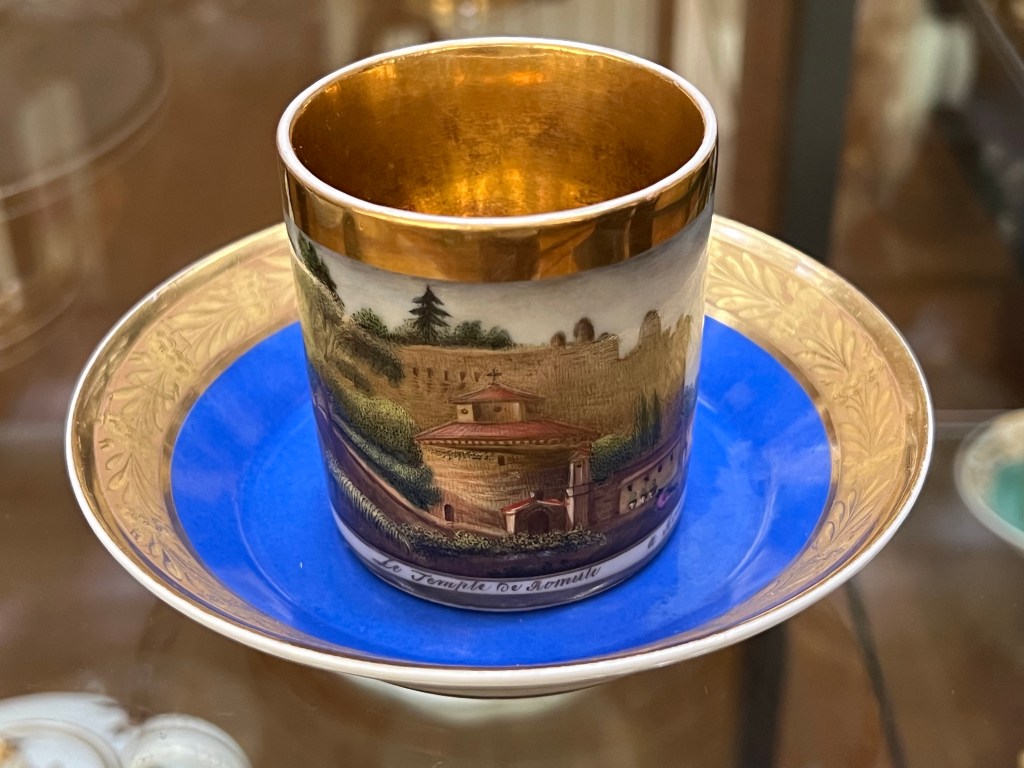 The following images are of porcelain cups from the Korzec Porcelain manufacturing firm, established by Prince Józef Klemens Czartoryski in 1783 and initially run by Franciszek Mezer (brother of Michael Mezer, who also worked here before founding the Baranówka factory). The factory closed in 1831, but wares continued to be sold from its warehouse until 1847.