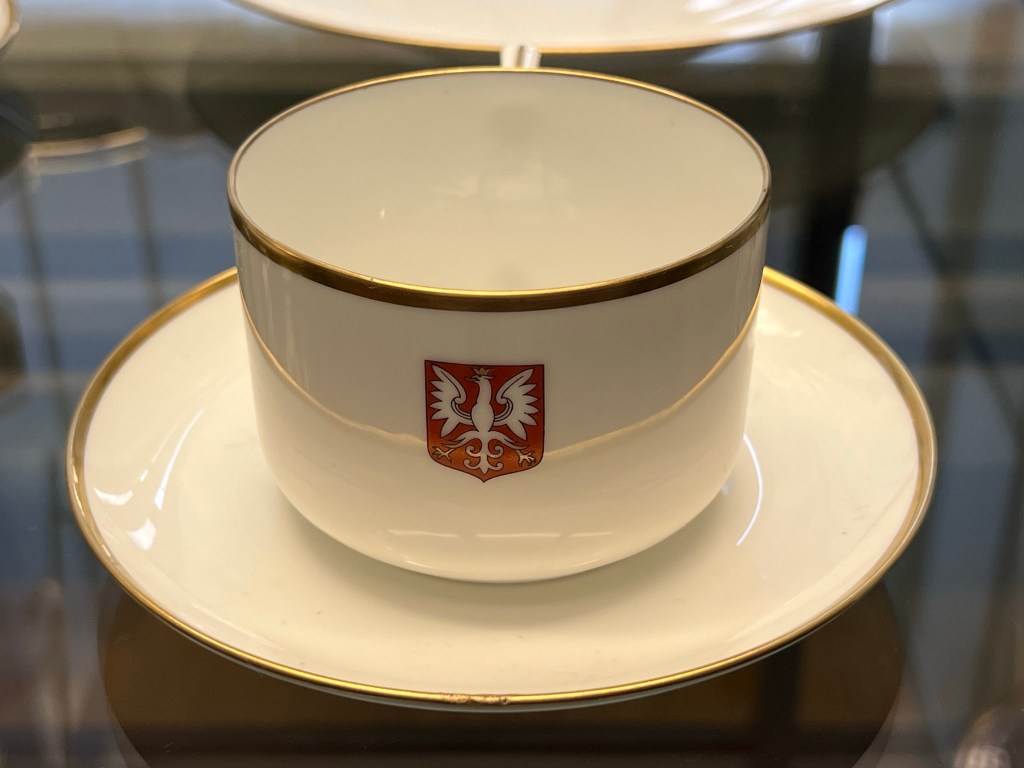 I’m reproducing a sampling here from the Museum’s display cases. The first 3 photos are porcelain cups from the Baranówka and Tomaszow Lubelski porcelain factories. Baranówka Porcelain was founded by Michel Mezer in 1801 in south-central Poland (and once part of the Russan empire). Baranówka porcelain was deemed equal to that of the Imperial factory of St. Petersburg, and as an acknowledgement of this quality the firm was allowed to use the imperial eagle as their mark.