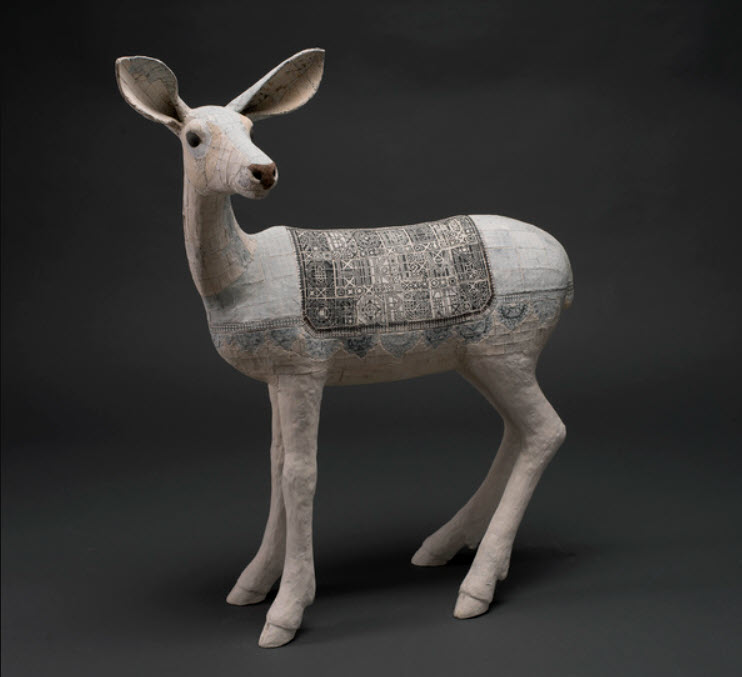 Lindsay Montgomery’s work punches pretty hard, there’s no doubt about it. She decorates her surfaces with narratives that harken back to historical periods and themes. She draws liberally from the past, and reformulates it into a contemporary vision. Her work is fun, vibrant, intriguing, irreverent, and memorable.