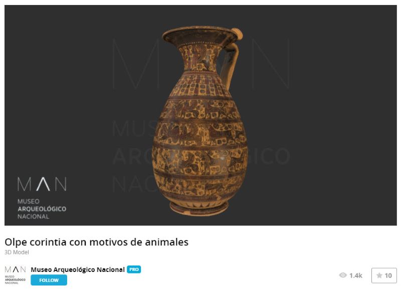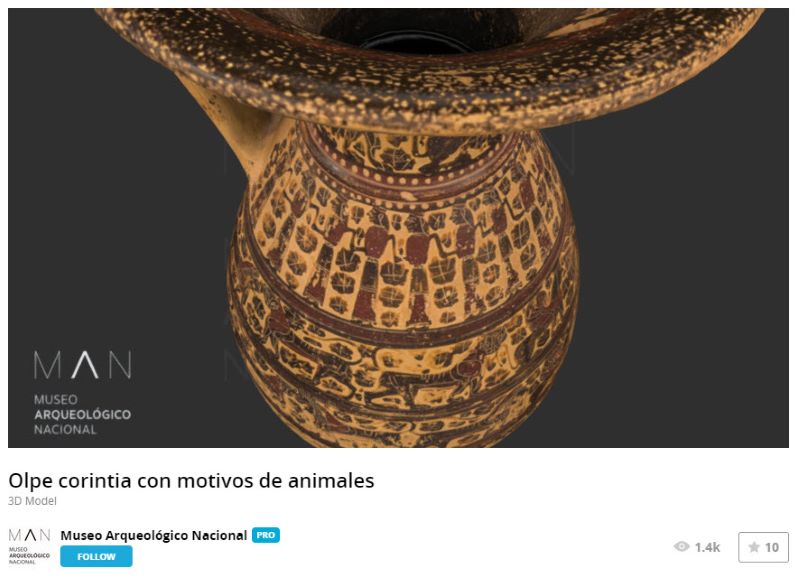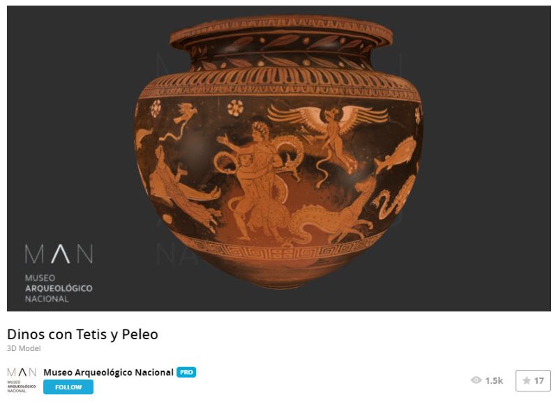 As a follow up to an earlier post on technologies being used to create 3D models and visualizations of ceramics, I found 30 models of ancient Greek pottery created for the Museo Arqeologico Nacional in Madrid, Spain.