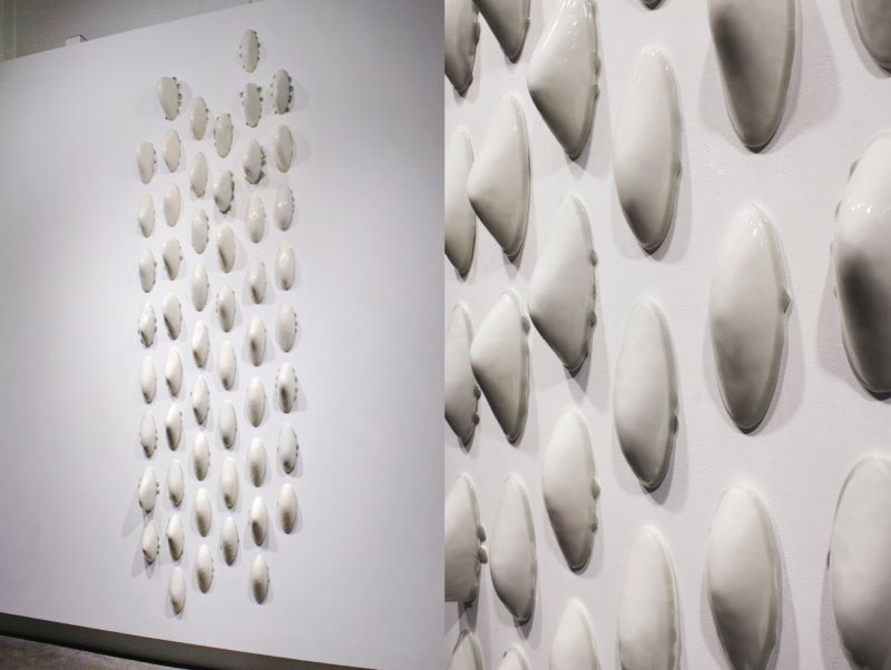 AA: I look at furniture and architecture designs books for installation ideas, Korean architecture for motifs, and patterns. I have a private Instagram account where I gather images all together like a mood board. I also print these inspirational images out to create a separate collage. Artist wise, I have been looking at works by Francesca DiMattio, Robert Lazzarini, and Ron Nagle. Most of my works are monochromatic, so I am looking for works with vibrant colors to try something new.