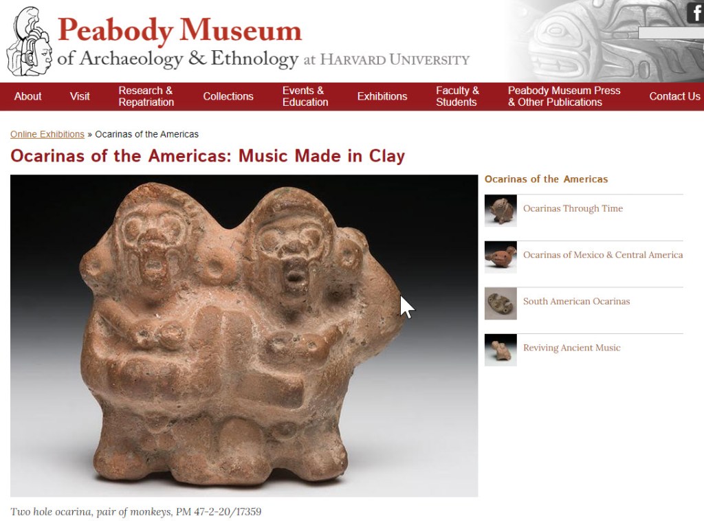 Harvard University’s Peabody Museum is offering an online exhibition entitled “Ocarinas of the Americas“: