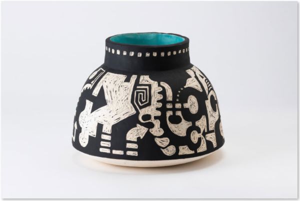 JW: You incorporate script into your pottery. Can you tell me how and why you do that?