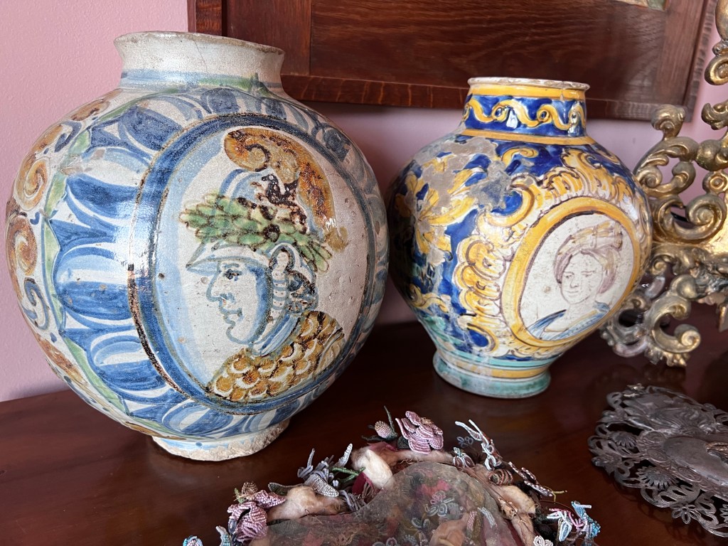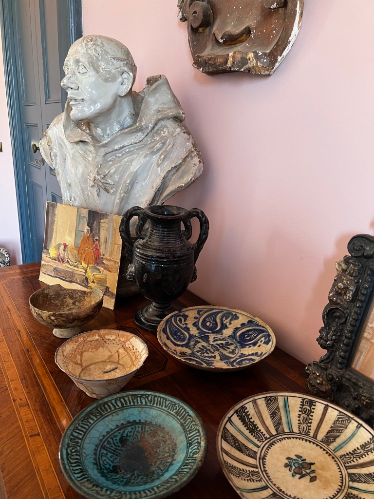 The ceramic pieces that now decorate Casa Coseni are from various styles and eras, reflecting the eclectic taste of Robert Kitson. They form a delightful accompaniment to paintings, books and decorative arts sprinkled around the property. there isn’t a single ceramic item I would point out – more the blend of decorative items that make the living spaces so compelling.