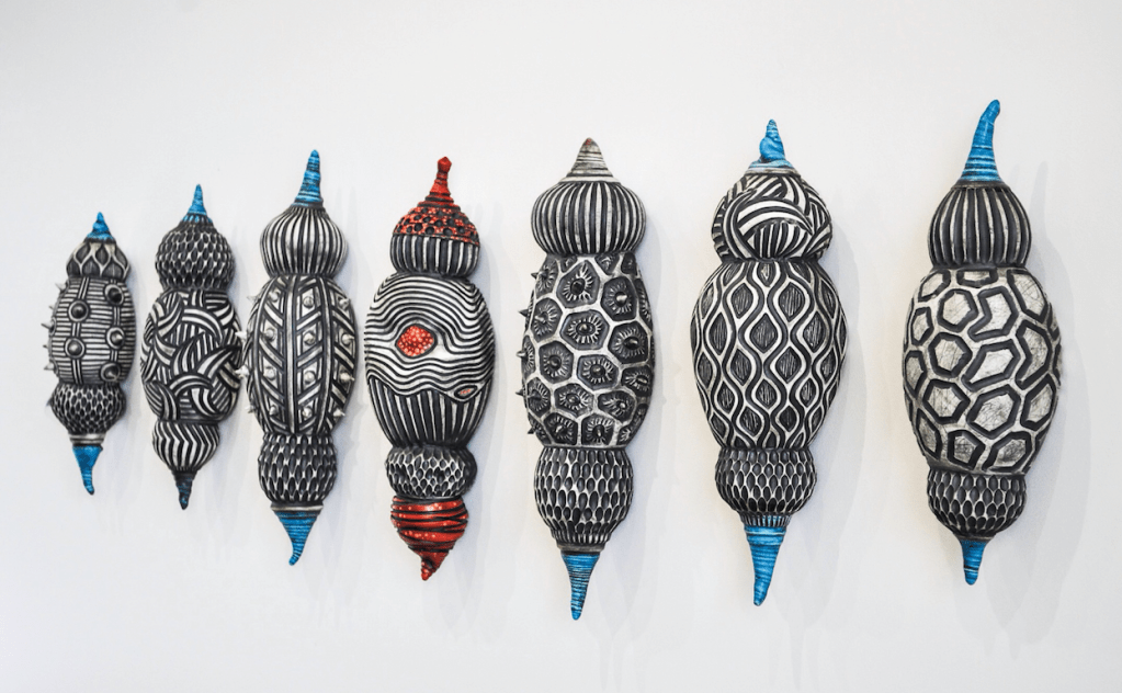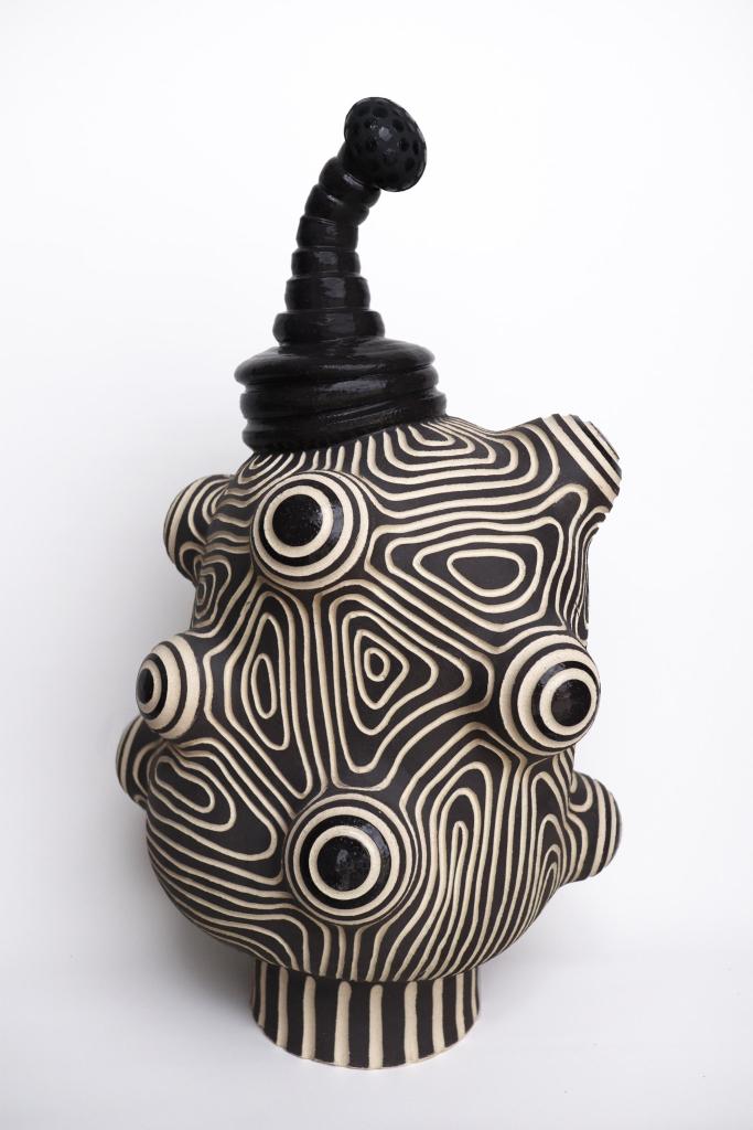 Ceramics, generally, is an outer shell with an inner space, not unlike what it is to be human. Facial expressions and body language are an expression of emotion, and we adorn ourselves with an outer shell that ensures we belong or ‘fit in’ with those we choose to surround ourselves with. These are the adaptations of humanity to ensure survival. I like to investigate this, so that I might understand people more effectively. I use texture and pattern to represent emotions, feelings and the idea of an outer shell or façade. This is also relevant today with a generation of people creating digital facades through social media censorship. The space within the ceramic vessel is where the truth lurks, but this is the place we cannot see.