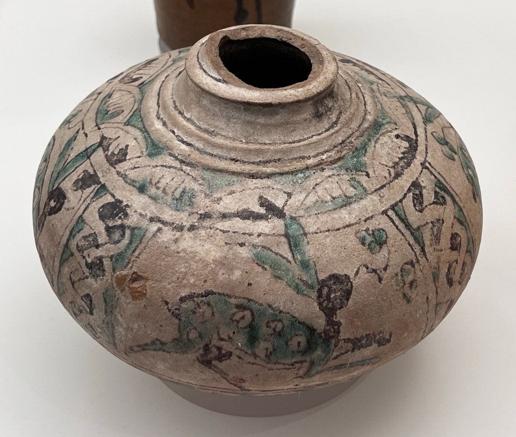 “Jug of the Hares” (10th century, glazed green-and-manganese pottery)
